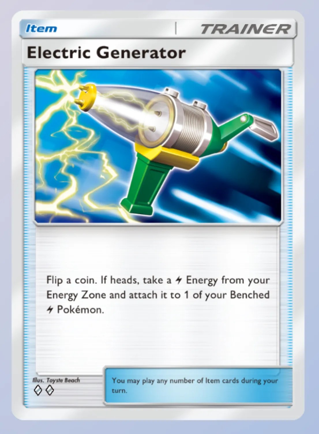 A staple of any lightning-based deck, Electric Generator will help your tempo considerably. Adapted directly from the TCG proper with modifications for Pocket, this card was introduced in the Scarlet & Violet era.