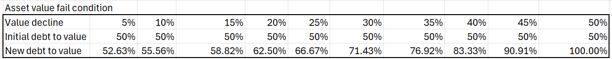 The more debt on a project, the more sensitive it is to asset value shocks.