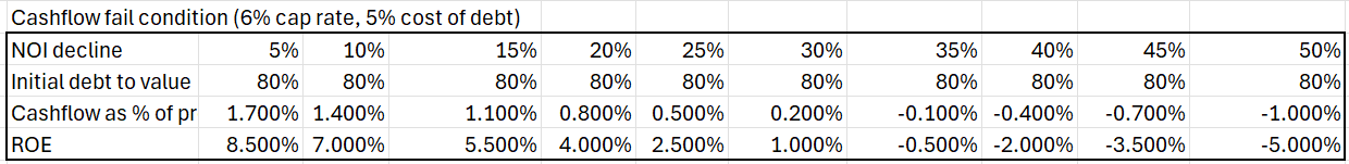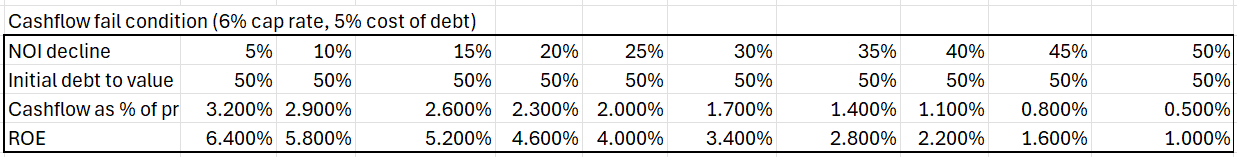 Just as the ROE scales exponentially with debt to value ratios, so does the risk. Leverage introduces 3 distinct fail conditions to real estate.