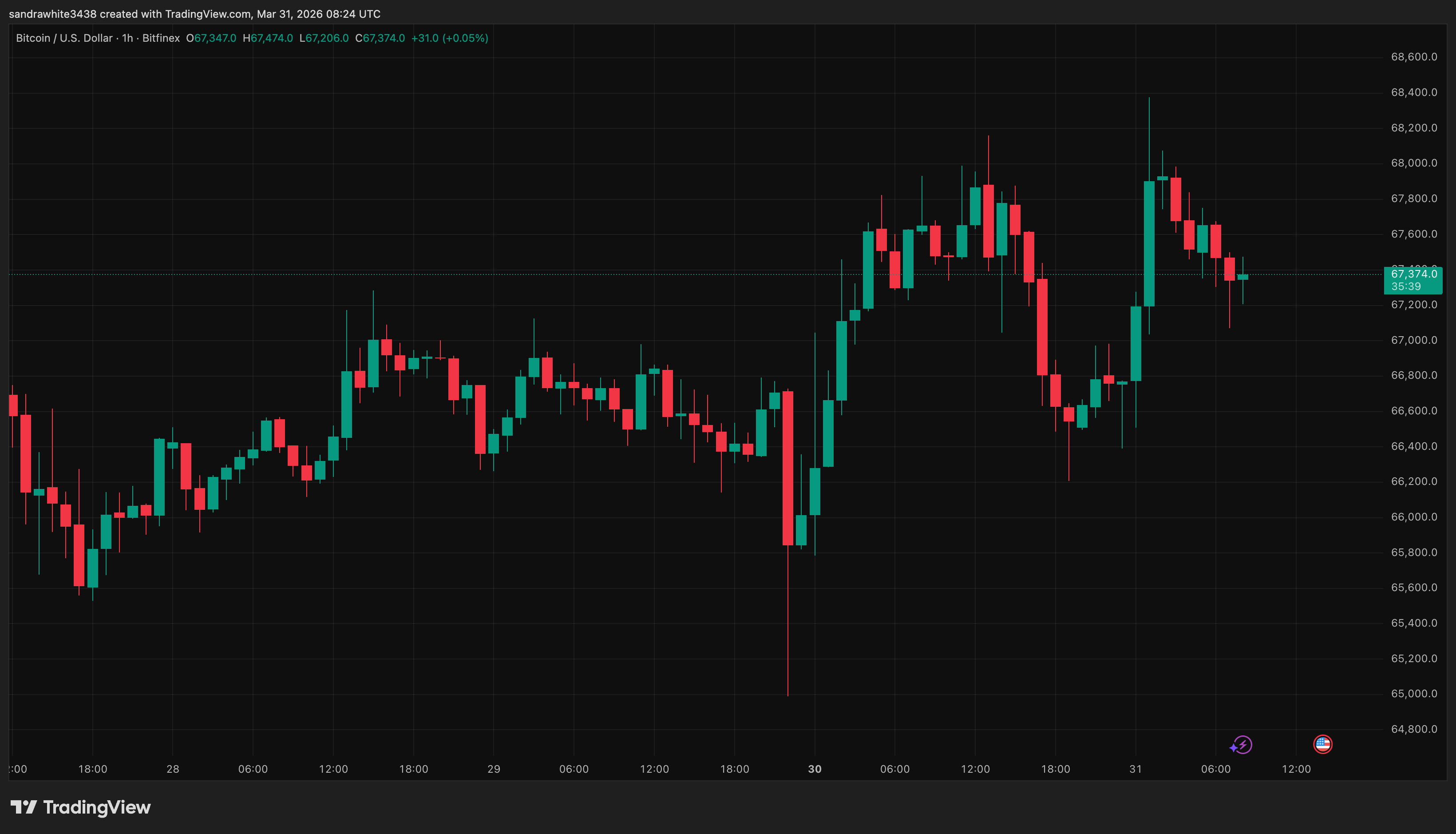 As it stands, the Bitcoin price is most likely going to close March below $70,000, and it is even at risk of closing the month red, which would bring it to six consecutive months of bearish closes. At the time of writing, Bitcoin is trading at $67,339, which places it just 0.57% above its March open of $66,970.
