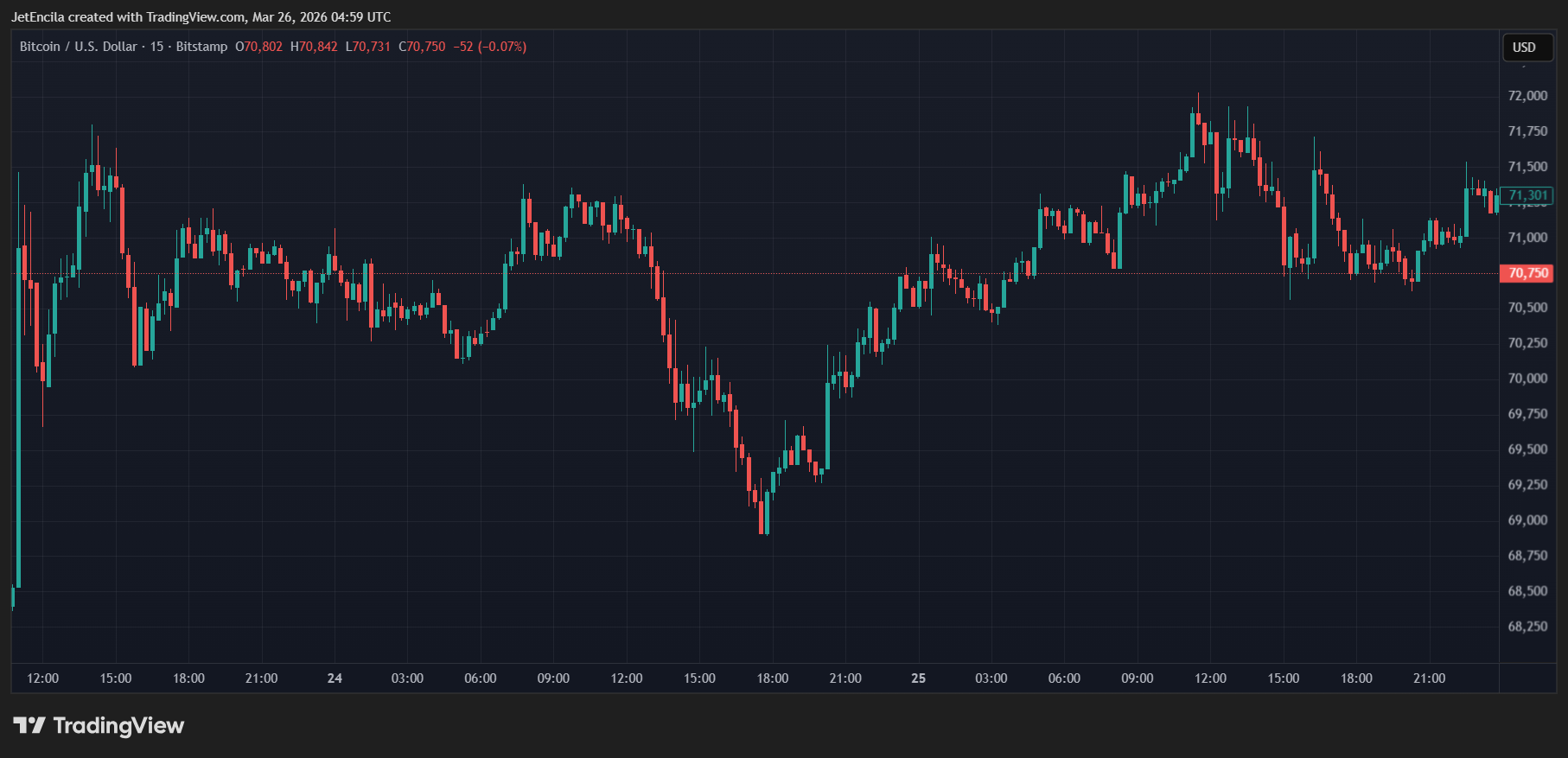 BTCUSD now trading at $70,749. Chart: TradingView