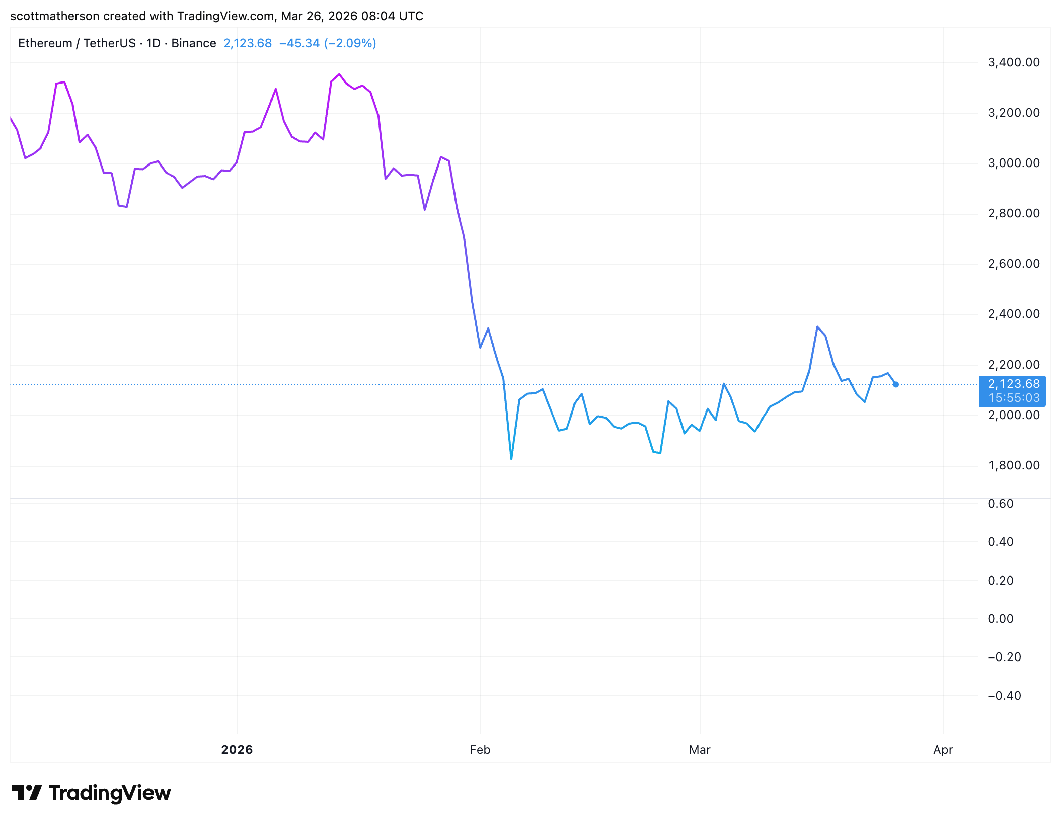 At the time of writing, the Ethereum price is trading at around $2,140, down in the last 24 hours, according to data from CoinMarketCap.