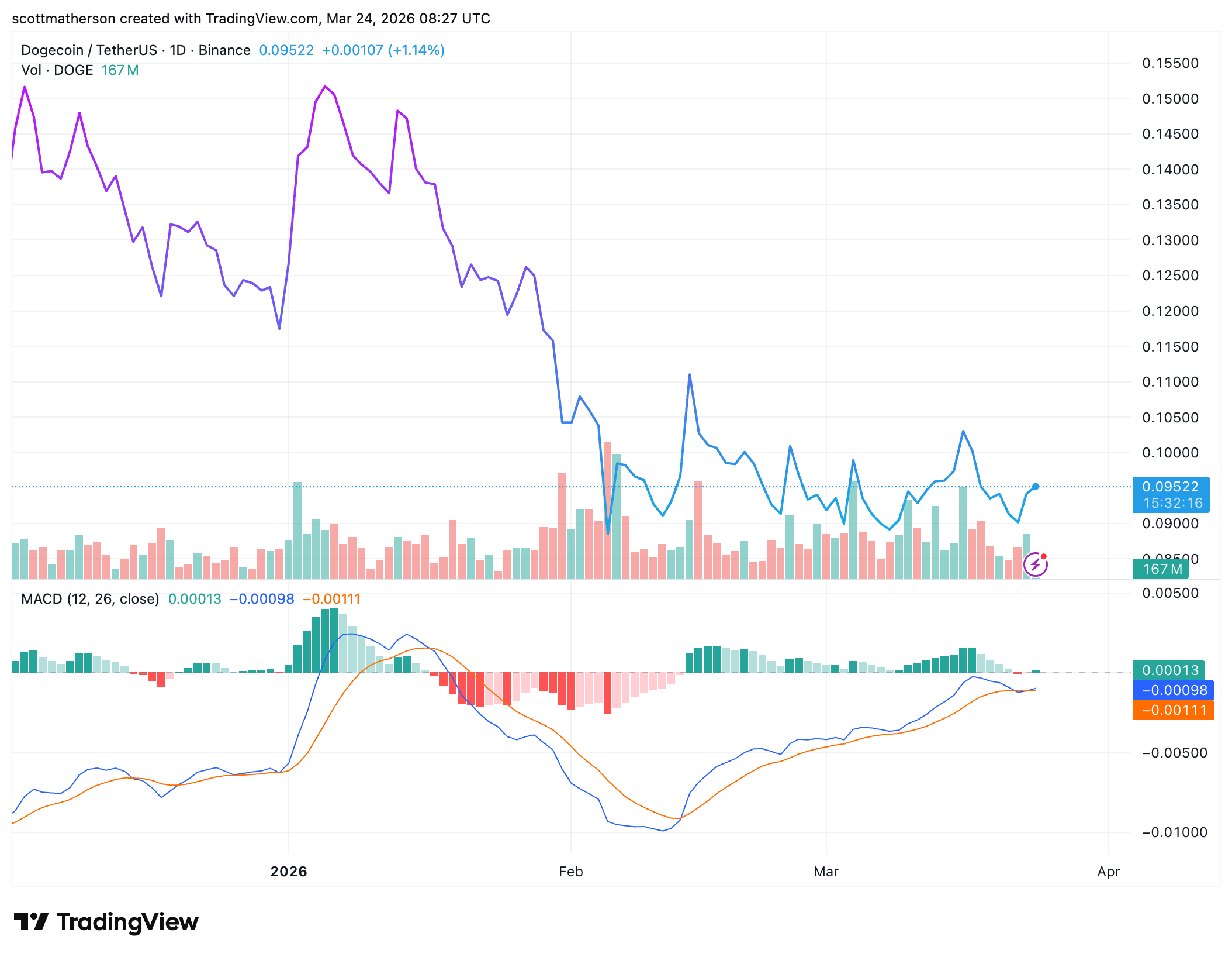 In the meantime, crypto analyst Trader Tardigrade warned market participants to be careful of the current Dogecoin price action on the daily chart. He noted that DOGE is still holding above support but that two indicators are flashing bearish. This includes the Relative Strength Index (RSI), which is breaking down from support. Furthermore, the MACD is close to a bearish crossover. However, Trader Tardigrade is bullish on the monthly, stating that DOGE looks primed for a rally to $1.