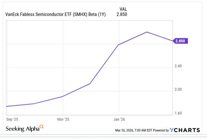 The prospects of the fabless semiconductors that SMHX covers are closely linked to the growing appetite of AI and spending associated with the AI wave. If the AI cycle seizes, or if investors were to start expressing concerns over the ROI (Return on Investment) associated with elevated AI spending, this could hamper SMHX more than other diversified semiconductor ETFs that also cover semiconductor stocks that are more exposed to traditional categories such as consumer electronics, automotive, defense, etc.