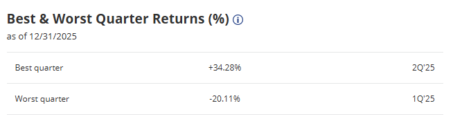 SMHX’s annualized volatility profile amounts to almost 40% and is more than 2x greater than the volatility that ETFs in general experience. This suggests that the returns that SMHX provides tend to be erratic; for added context, note that in 2025, between Q1 and Q2, we saw some wild swings, where SMHX had contracted by -20%, only to then recover by +34% in the following quarter.