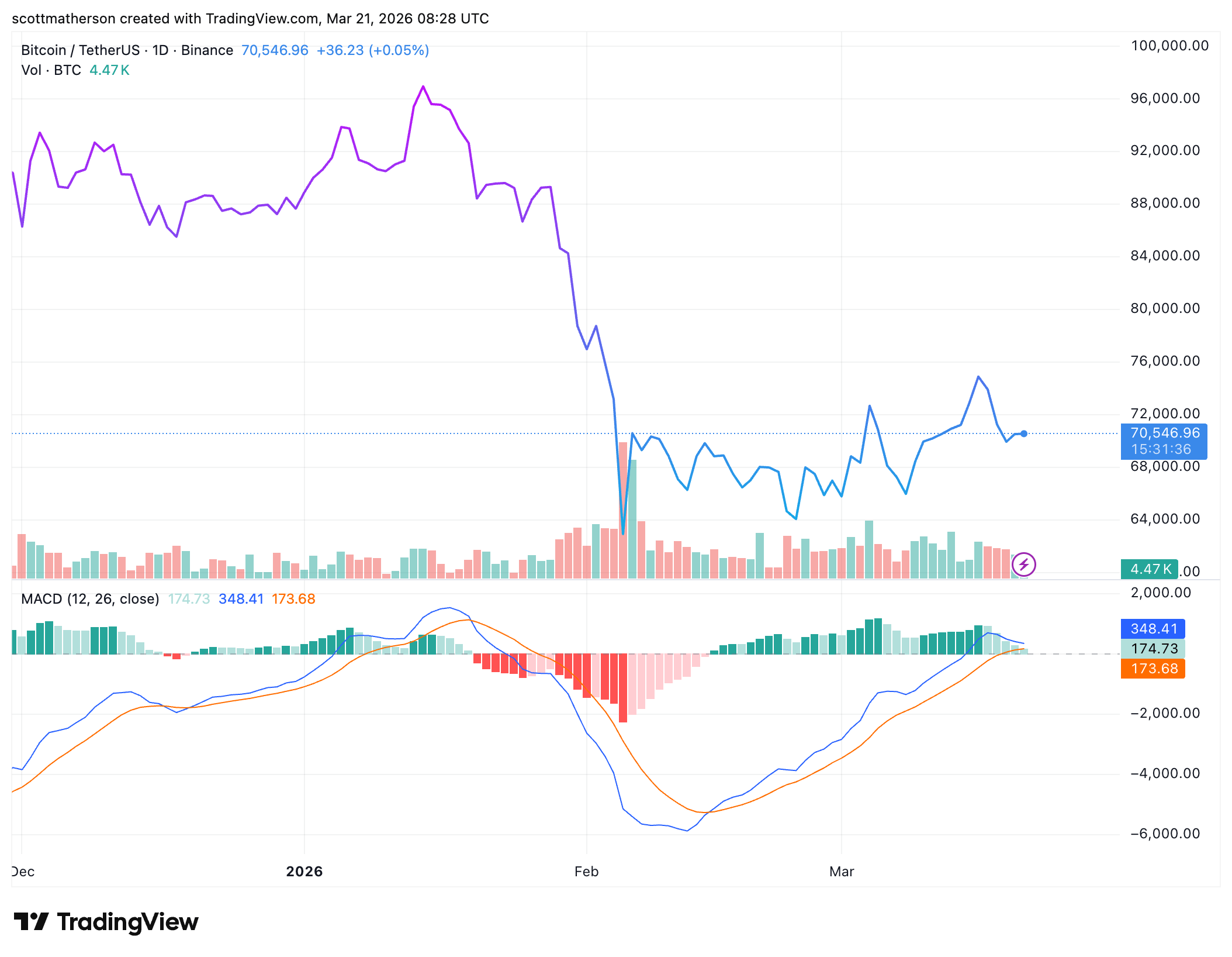 At the time of writing, the Bitcoin price is trading at around $70,700, up in the last 24 hours, according to data from CoinMarketCap.