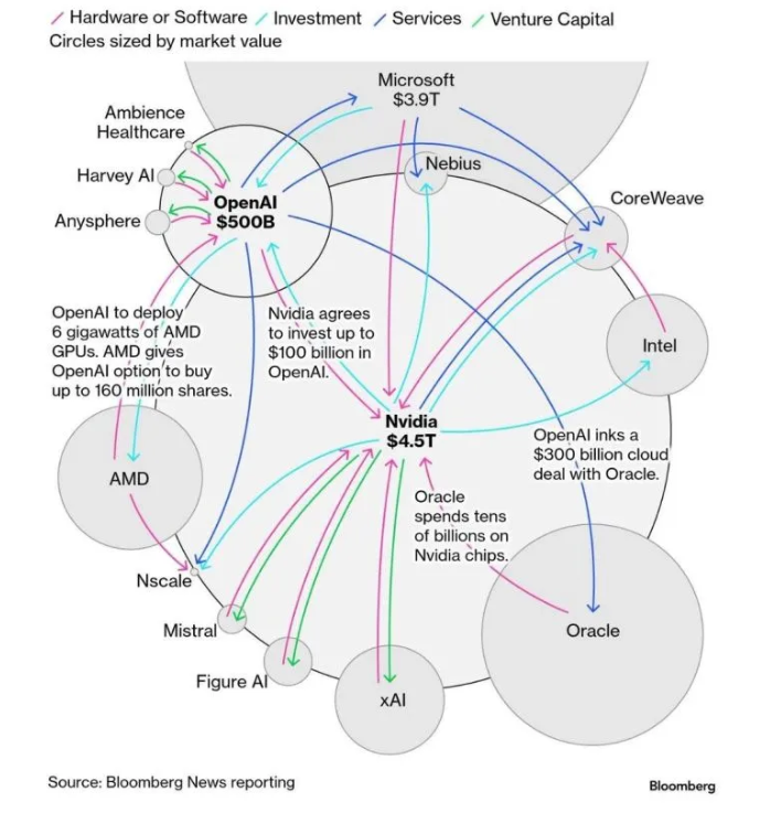 Another major concern has been the circular flow of capital between leading AI firms. Nvidia expanded its investment in OpenAI with a USD 100 billion deal tied to future data center demand for its chips, while also signing a USD 6.3 billion agreement with CoreWeave to purchase unused data center capacity through 2032, in addition to holding an equity stake and supplying GPUs. OpenAI also bought billions of dollars worth of chips from AMD and became one of its largest shareholders, while Microsoft and Oracle entered major partnerships and investment agreements with the company. These interconnected investments have raised concerns that valuations may be reinforcing each other rather than being driven purely by underlying demand.
