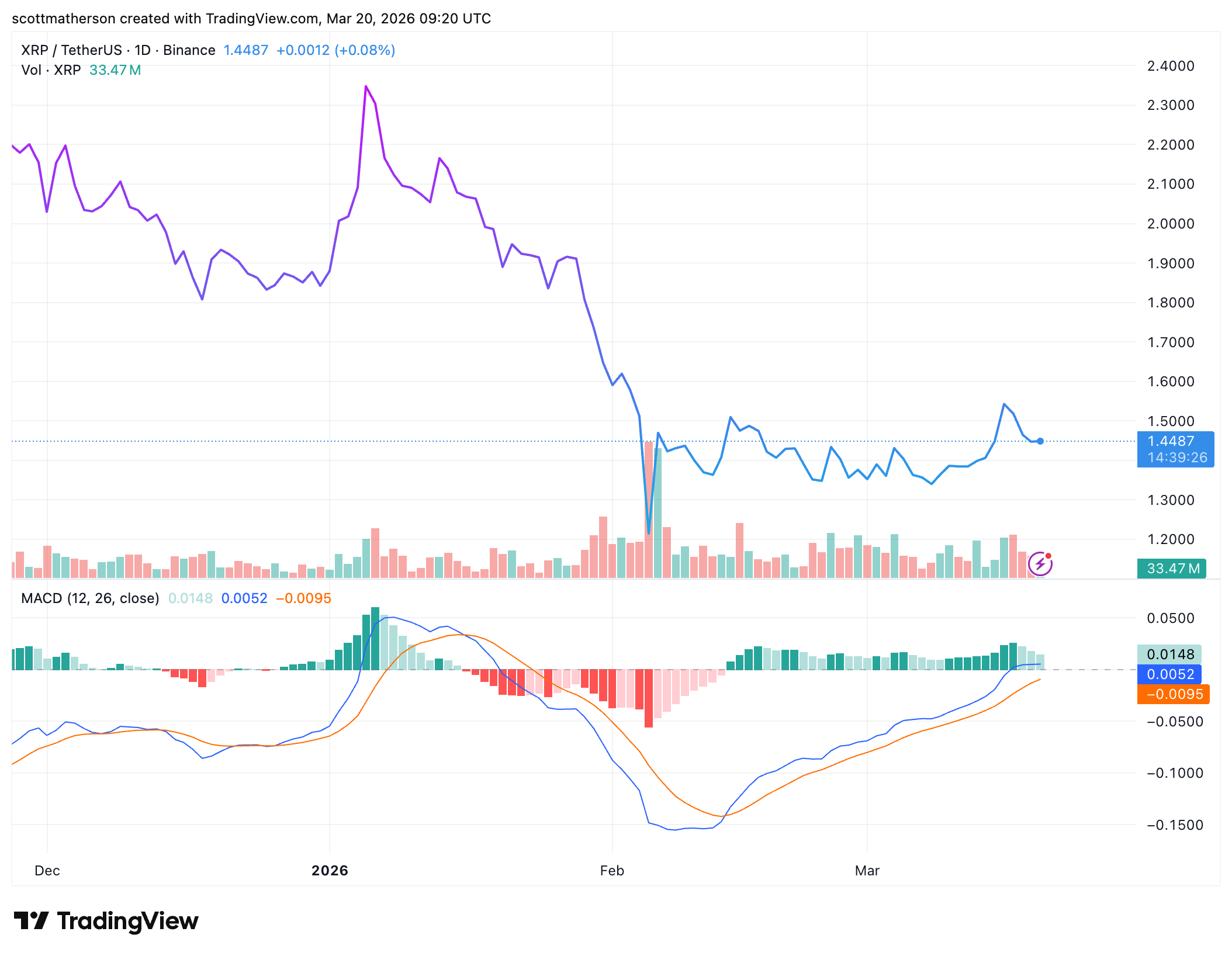The daily candlestick timeframe chart shared by the analyst shows XRP still trading within a descending structure since July 2025. The XRP price is yet to break above the upper boundary of that larger downtrend channel, which means the latest rally has improved the short-term picture without fully repairing the wider one. As it stands, XRP might even be approaching the channel’s lower trendline if it fails to break and hold above $1.50.